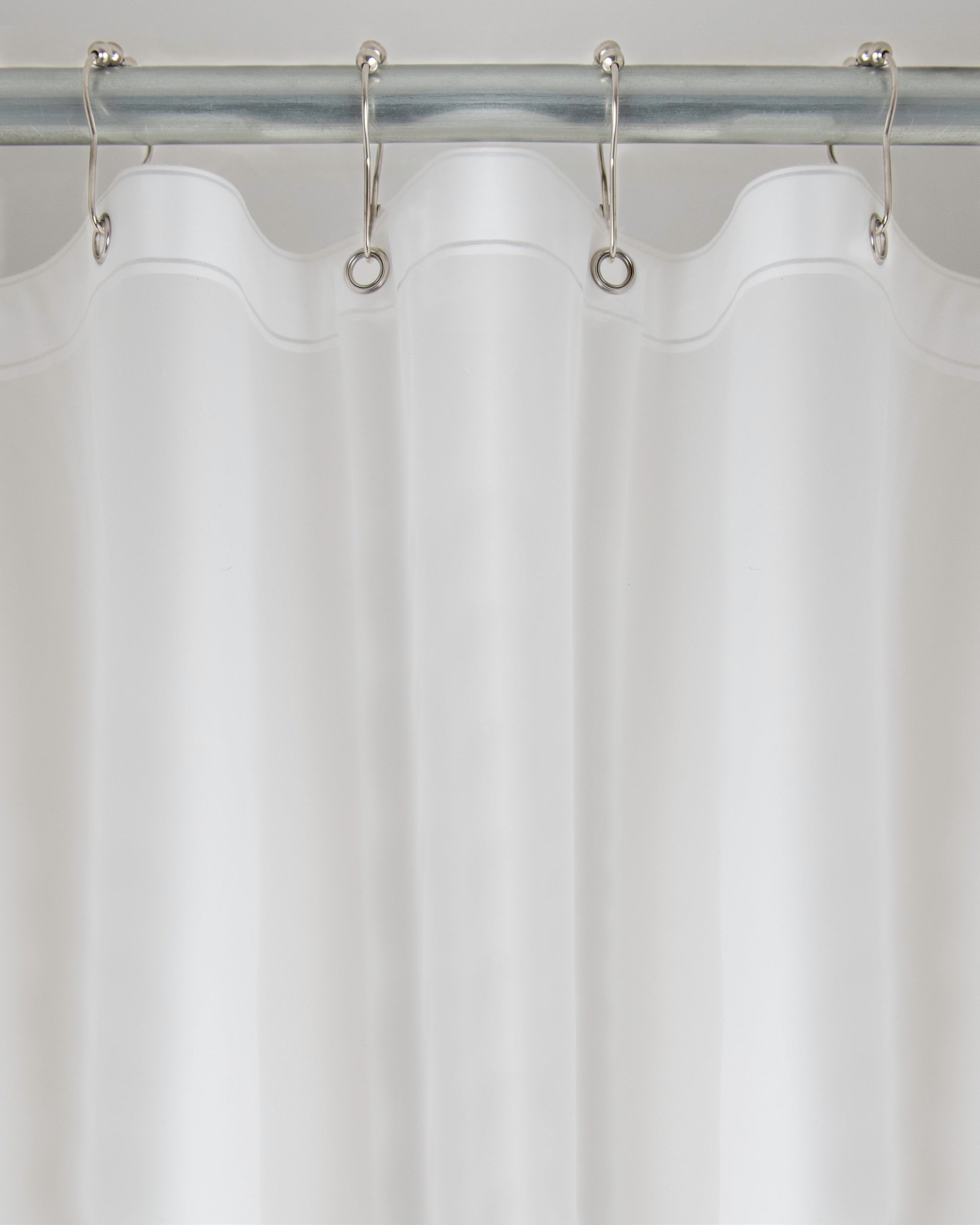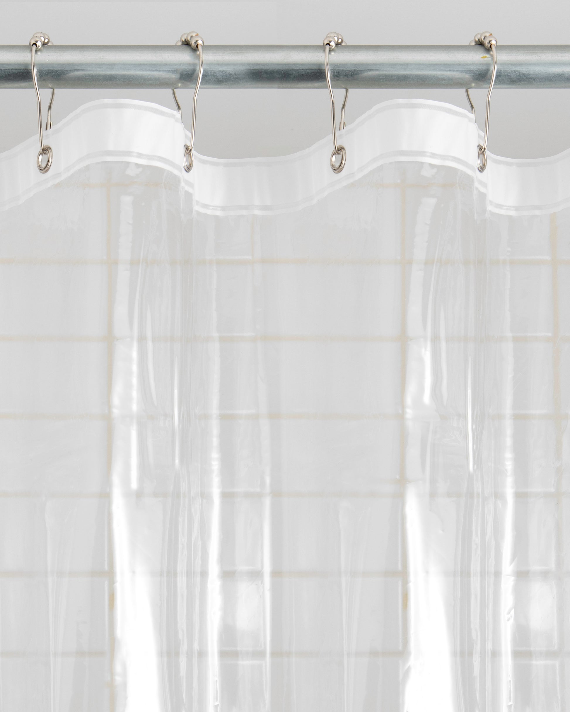 This 100% PEVA shower curtain/liner offers an eco-friendly and healthy alternative to traditional PVC. It's odorless, mildew-resistant, and features durable metal grommets and magnetic weights for easy hanging and staying in place. At 70" x 72", it provides overall coverage for standard tubs and showers, and is low-maintenance for easy cleaning.