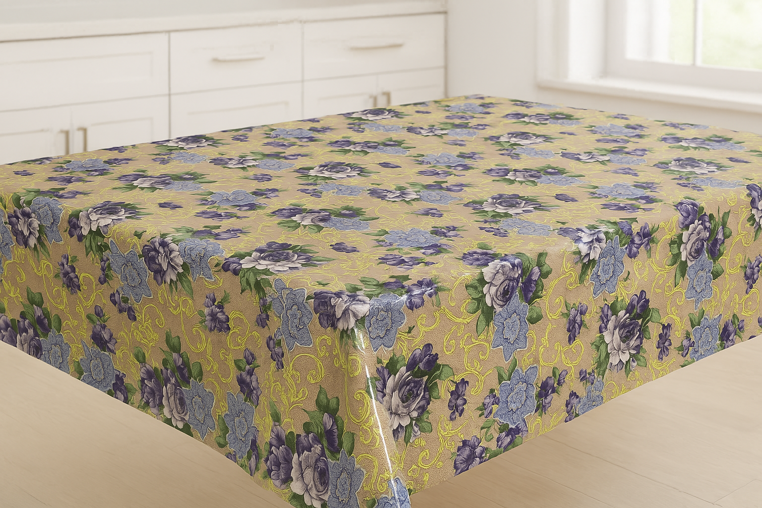 Royal Rose Scrollwork PEVA Tablecloth – Waterproof with Elegant Purple & Blue Floral Design